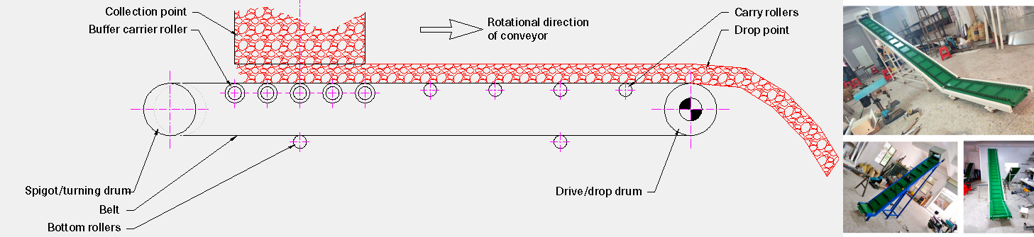 Tensioning device: In order to ensure that there is enough friction between the belt and the roller and prevent the belt from slipping, the conveyor is usually equipped with a tensioning device.