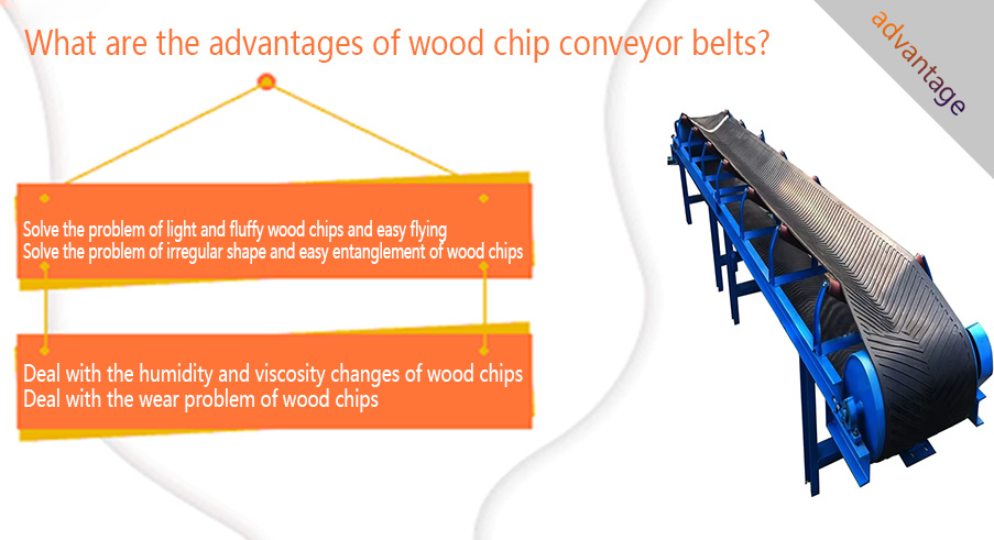 By designing the wood chip conveyor belt into a groove with a certain angle, the wood chip capacity can be increased, and the sidewalls on both sides can be used to effectively prevent the wood chips from scattering and flying during transportation.